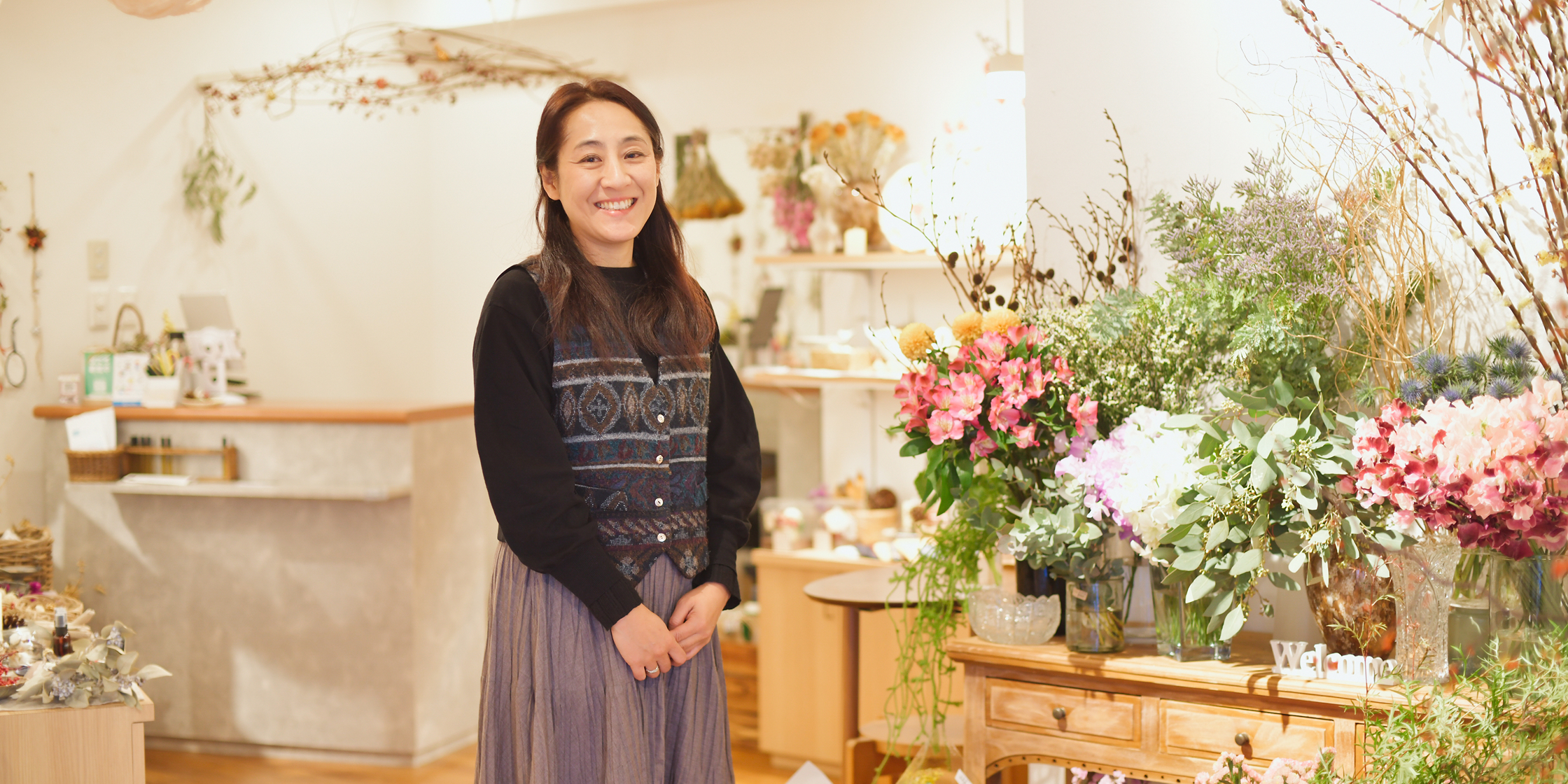 生花からリース、ドライフラワーまで。日常を彩るさまざまな花を届けたい。