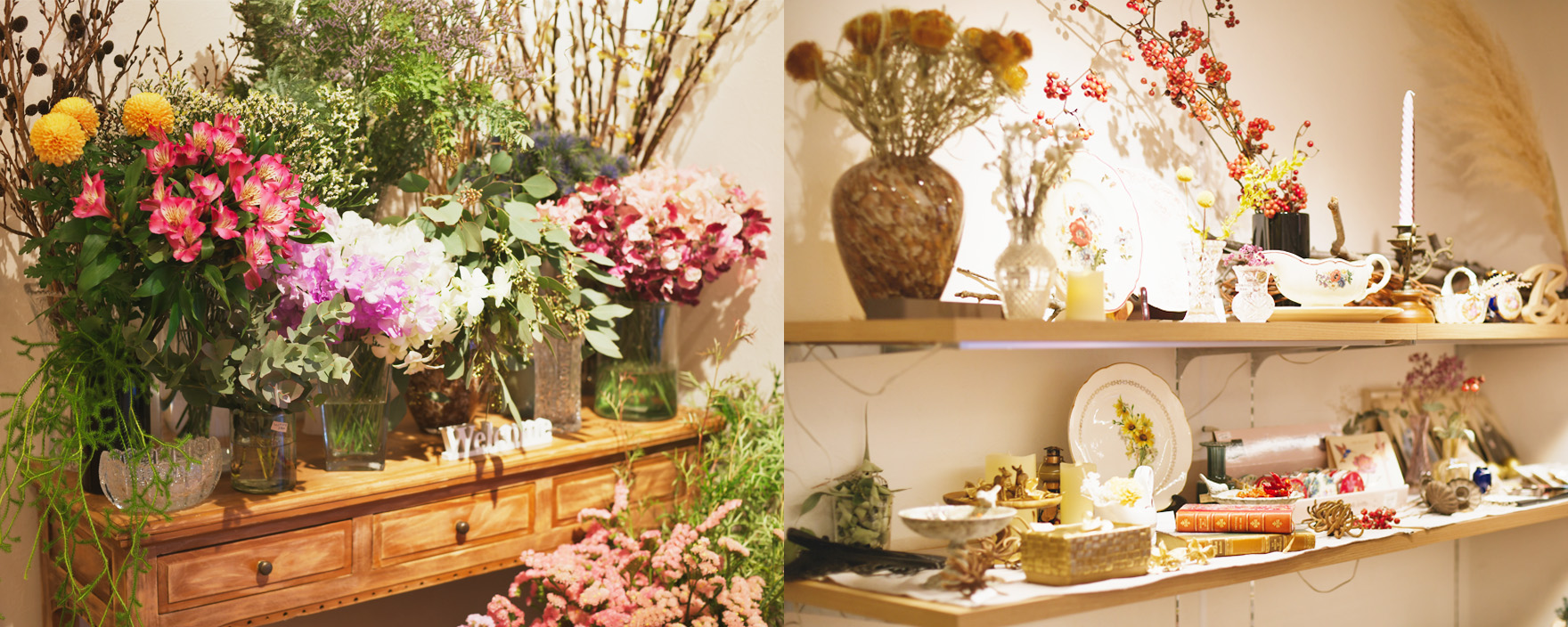 季節の花とデコレーション、フランスアンティーク雑貨のお店
